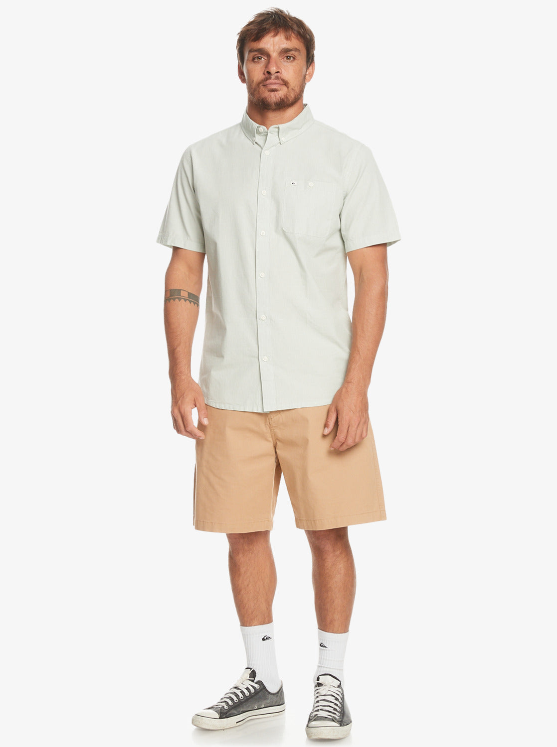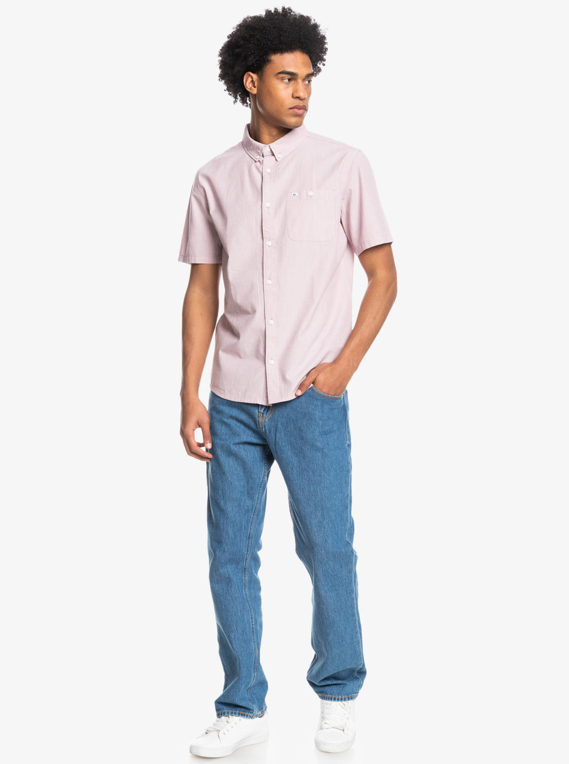 Experience easy summer style with our Quiksilver Winfall Short Sleeve Shirt. Crafted from textured cotton fabric, this classic-fit shirt features a regular button closure, chest pocket, and slightly curves hem.